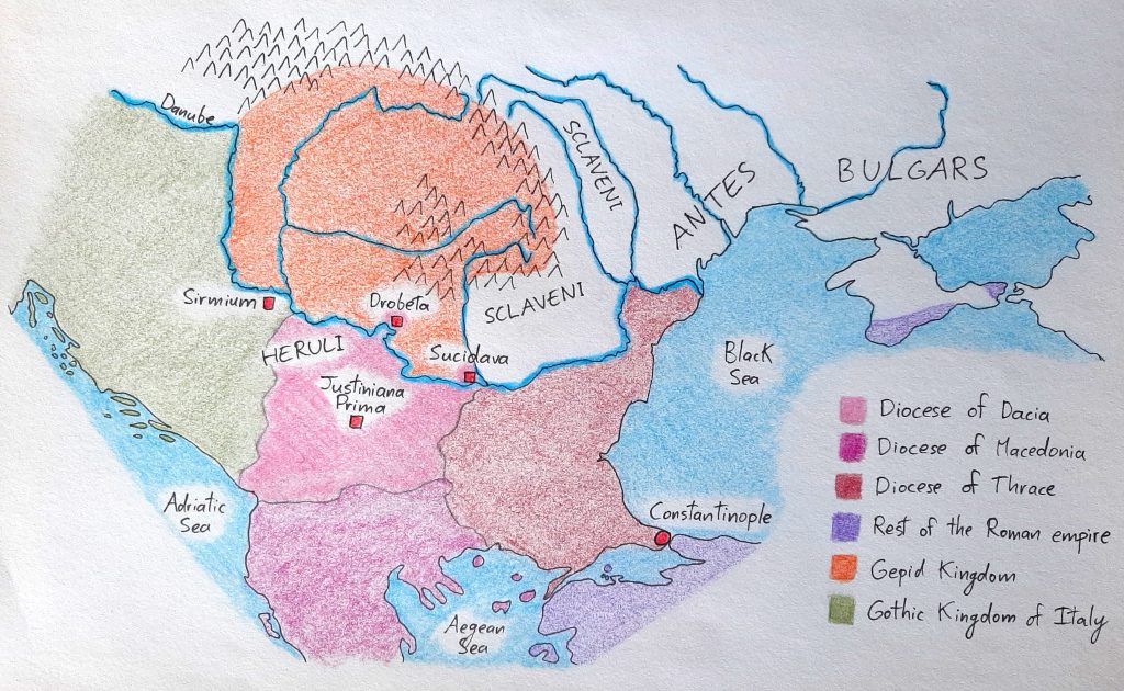Here’s what the Balkans looked like in 535 CE just after emperor Justinian inaugurated Justiniana Prima, his new city in the middle of the Diocese of Dacia that acted as the centrepiece of his defensive system in the region.